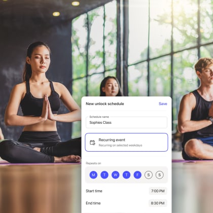 Spend less time managing the door and more time growing your studio with Kisi's automated access control. Instructors and students get in based on class schedules or memberships, so you don’t need to hand out keys or cards, unlock doors, or stay on-site.